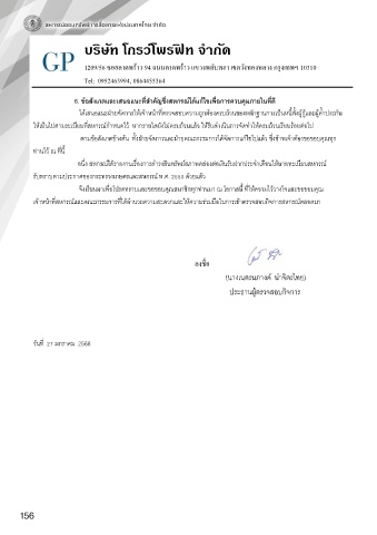 6 มีนาคม 2567 ได้เลือกตั้งให้บริษัท โกรว์โพรฟท จ ากัด โดยนางเนตรนภางค์ น าจิตรไทย เปนผู้ตรวจสอบกิจการ ส าหรับปทางบัญชี