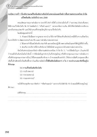 ให้มีการแก้ไขข้อบังคับ ข้อ 93 โดยตดคาว่า “หรือค าแนะน า” ออกจากข้อความเดิม เพอให้ข้อบังคับมีความชัดเจน
